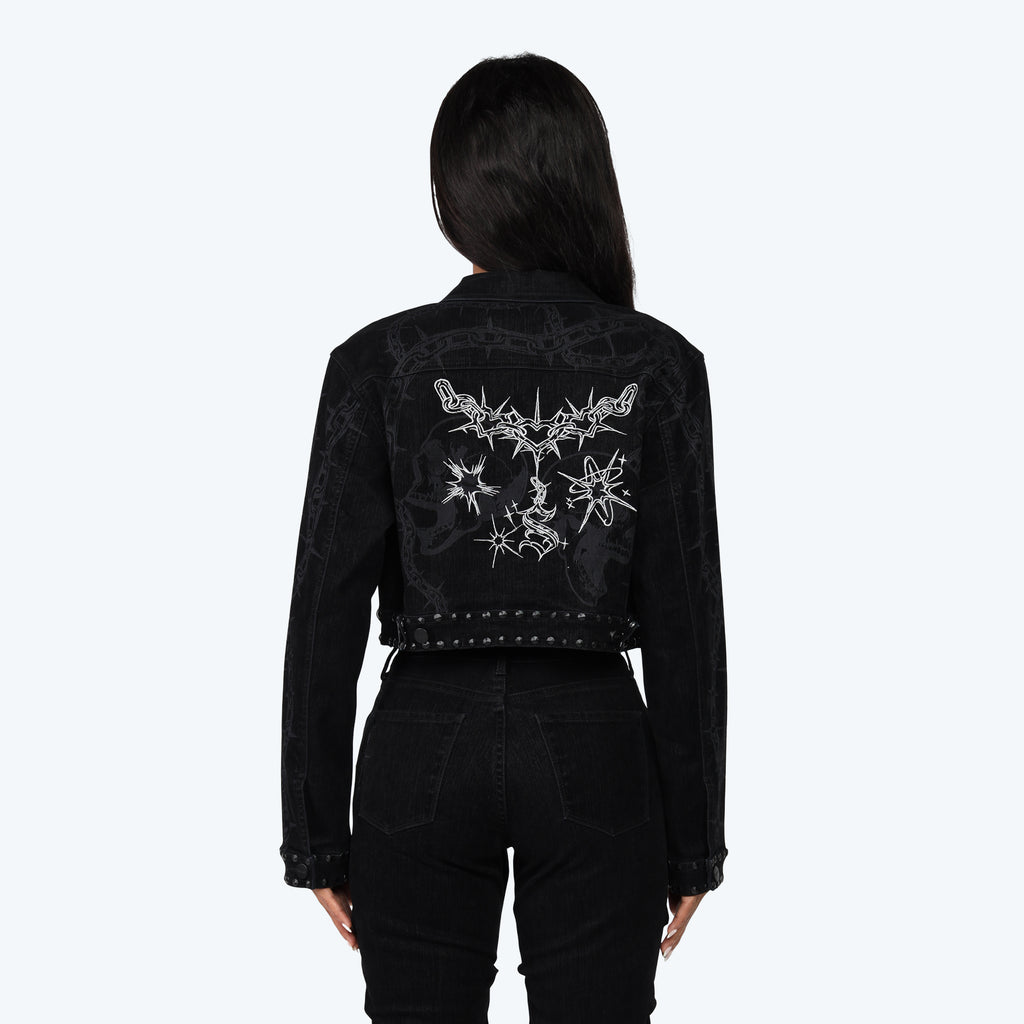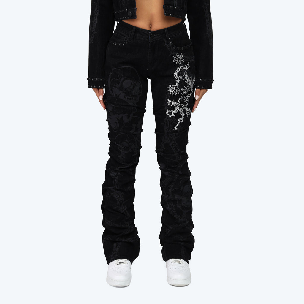 Smoke Rise Embroidered Jean Trucker Jacket Pinching Stack Set