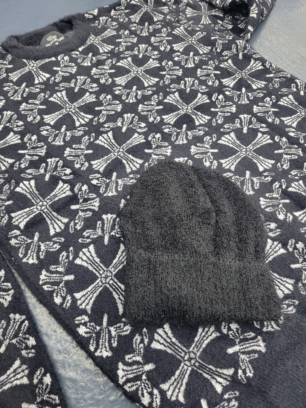 One In A Million Cross Pattern Mohair Crewneck