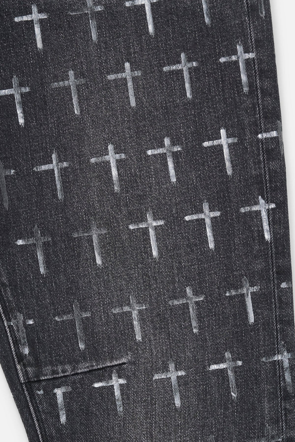 The Bryant Skinny Jean in Noir Coated Grey is made from premium denim. Designed with a skinny fit and reinforced stitching on the inner thighs, these jeans feature transparent vinyl RtA crosses throughout, the cross on the back pocket, signature leather patch at the waistband, and a reflective coated finish.