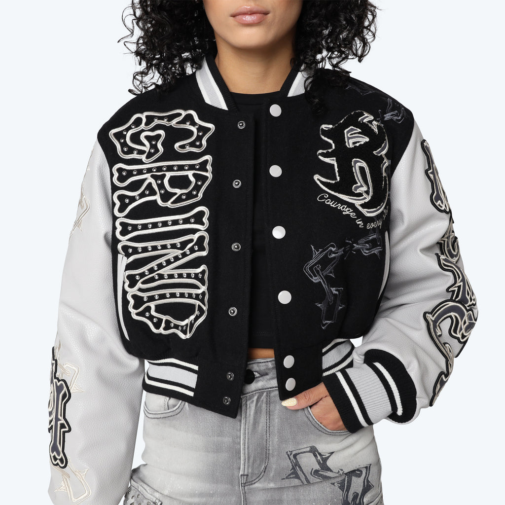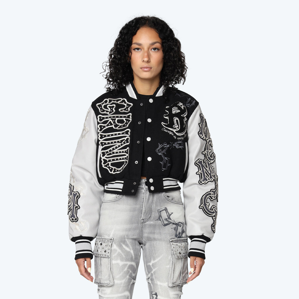 Smoke Rise "Dystopia" Crop Fit Varsity Jacket