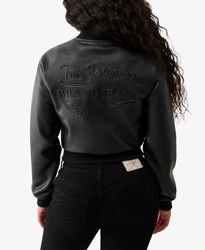 True Religion Women's Crop Polyurethane Bomber Jacket - Jet Black