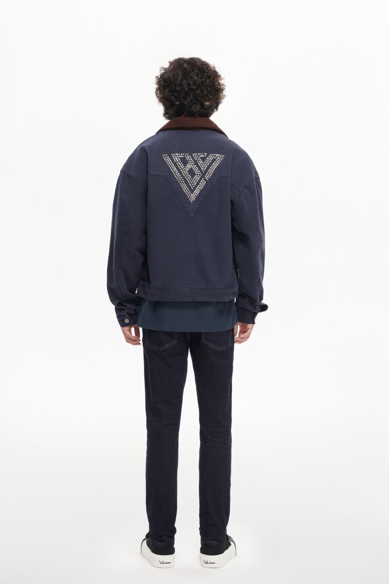 The Orient Jacket in Indigo delivers a standout statement with its oversized VALABASAS emblem constructed from precision-placed metal studs. Built from a heavyweight indigo canvas, this jacket blends durability with elevated design, finished with a plush contrast collar for warmth and texture. The relaxed silhouette layers effortlessly, making it a centerpiece piece for any wardrobe. Strong, structured, and unmistakably VALABASAS.